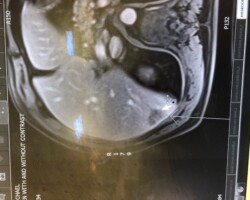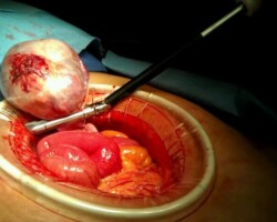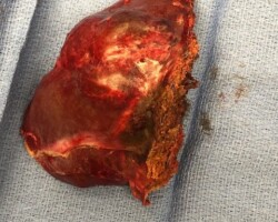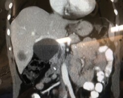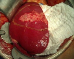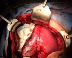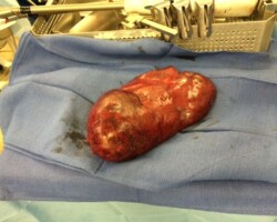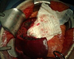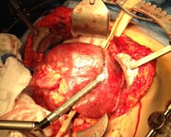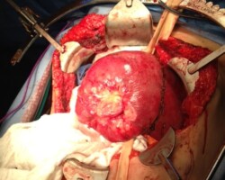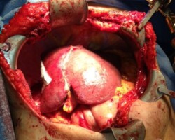 Resection of large retroperitoneal sarcoma including right and transverse colectomy and right hepatectomy