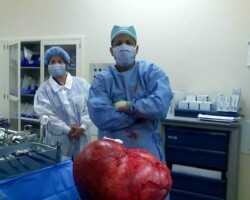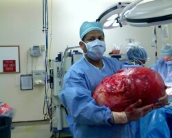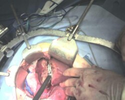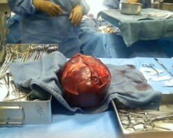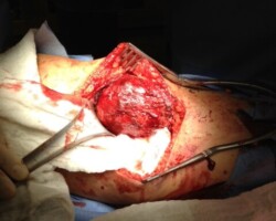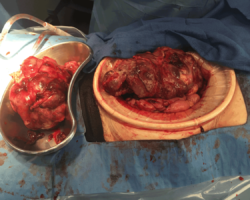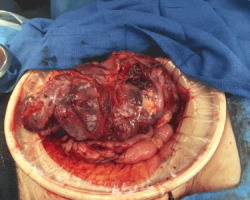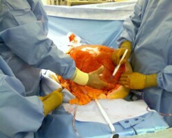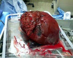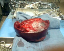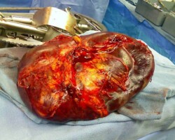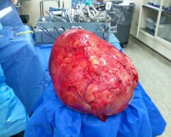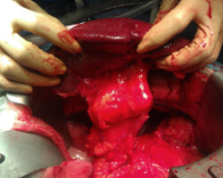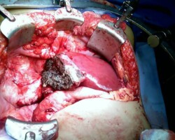 Resection of large retroperitoneal sarcoma including right and transverse colectomy and right hepatectomy
